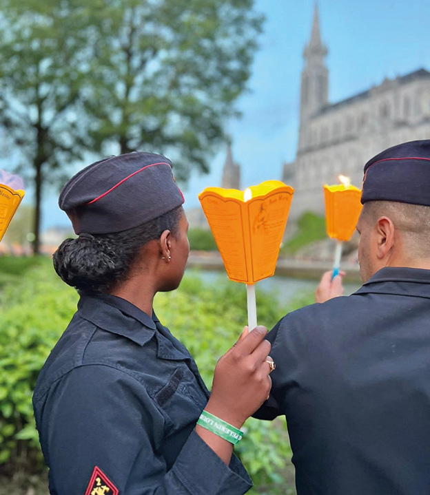 Ils vivent ce pèlerinage à Lourdes comme un temps de pause, de réflexion et de convivialité avec les autres militaires de France et d’ailleurs. Pour d’autres, c’est parfois l’occasion de redécouvrir la foi de leur enfance ou de leur jeunesse : les temps de prière, chapelet, les passages à la grotte, processions ou messes les touchent parfois profondément au point que, chaque année, après le pèlerinage, certains renouent avec la foi et la pratique religieuse. Ils demandent alors à préparer leur première communion ou la confirmation, ou se mettent « en règle » avec l’Église.
