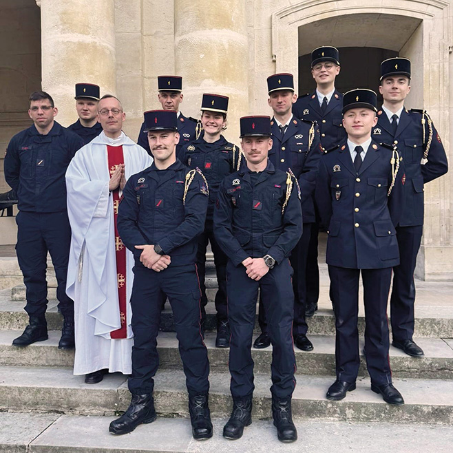Ils ont entre 19 et 25 ans, arrivent de province et sont confrontés à Paris et ses tentations. Je les aide à bien discerner. Ils ont un métier vraiment dur qui les amène à sortir tout le temps de leur zone de confort : plusieurs fois par semaine, ils se lèvent en milieu de nuit. « Le vrai courage, disait Napoléon, c’est celui de 3 h du matin ! ». Ils peuvent avoir une vraie fatigue qui s’accumule et doivent rester vigilants. Je m’efforce de leur transmettre des valeurs de compassion, d’empathie et de respect, tant envers les victimes qu’entre collègues. Mais la question cruciale, c’est la mort. Ils sont confrontés au sang, à la violence, à la solitude, à la misère et ses odeurs écœurantes… Il faut savoir que leur formation est de seulement quatre mois avant d’être plongés dans le grand bain : ça peut être une personne en overdose avec la seringue plantée dans le bras ou bien un bébé avec le visage en sang qui est tombé de sa chaise haute, ou encore une personne morte seule à son domicile. À la Brigade, les pompiers sont soutenus par leurs cadres de contact mais aussi par une équipe de psys, médecins et assistantes sociales.